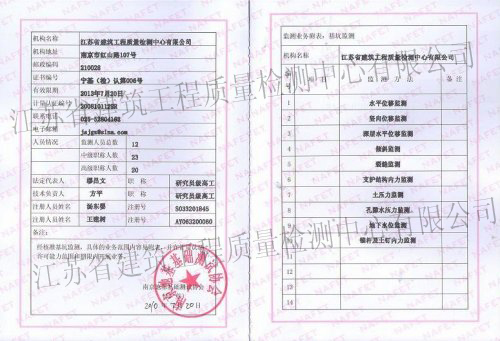 | 深基坑支護工程監(jiān)測機構資格認證證書 |