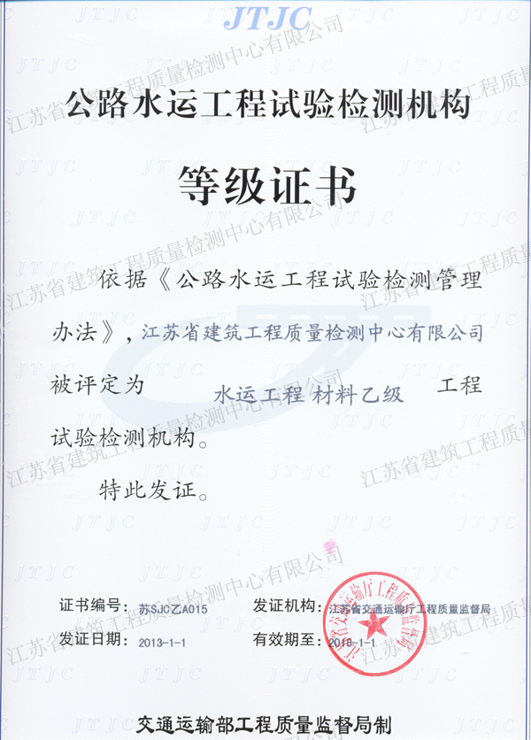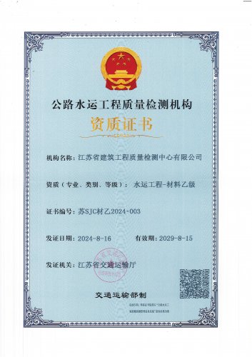 | 水運(yùn)工程材料乙級資質(zhì) |