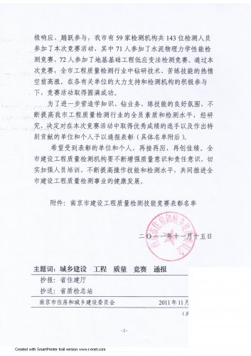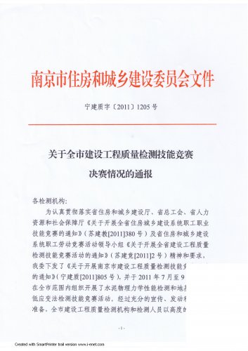 | 南京市住房和城鄉建設委員會《關于全市建設工程質量檢測技能競賽決賽情況的通報》 |