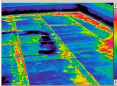 ![]() ![]() 紅外熱像法檢測某銀行辦公樓樓頂外表面(防水層失效造成雨水滲入)
