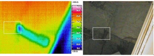 ![]() 紅外熱像法檢測某居民家浴室內給水管道情況(浴室漏水) 紅外熱像法檢測外墻飾面粘結缺陷