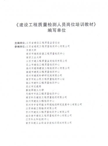 為了規范我省工程質量檢測人員培訓工作,全面提高工程質量檢測人員的業務素質和培訓質量,江蘇省建設工程質量監督總站組織編寫《江蘇省建設工程質量檢測人員崗位培訓教材》。我公司總經理楊曉虹同志作為教材第三章(建筑材料檢測)及第四章(建筑結構檢測)的組長,帶領公司其他幾位檢測專家方平、繆留根、張亞挺、陳新杰、湯東嬰等利用休息時間加班加點,圓滿完成了相關章節的編制工作。