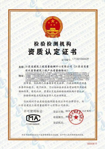 上一篇:人防工程防護設備質量檢測機構下一篇:國家城市軌道交通建設工程產品質量檢驗檢測中心檢驗檢測機構資質認定證書