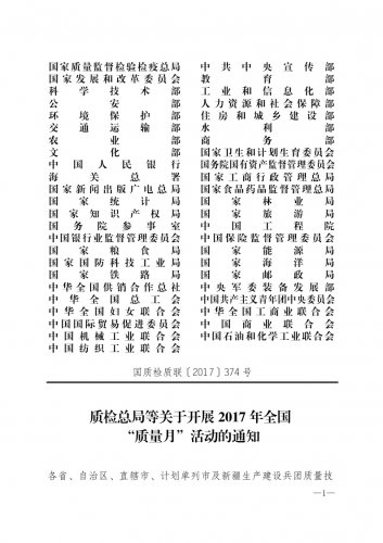 質(zhì)檢總局等關(guān)于開展2017年全國(guó)“質(zhì)量月”活動(dòng)的通知